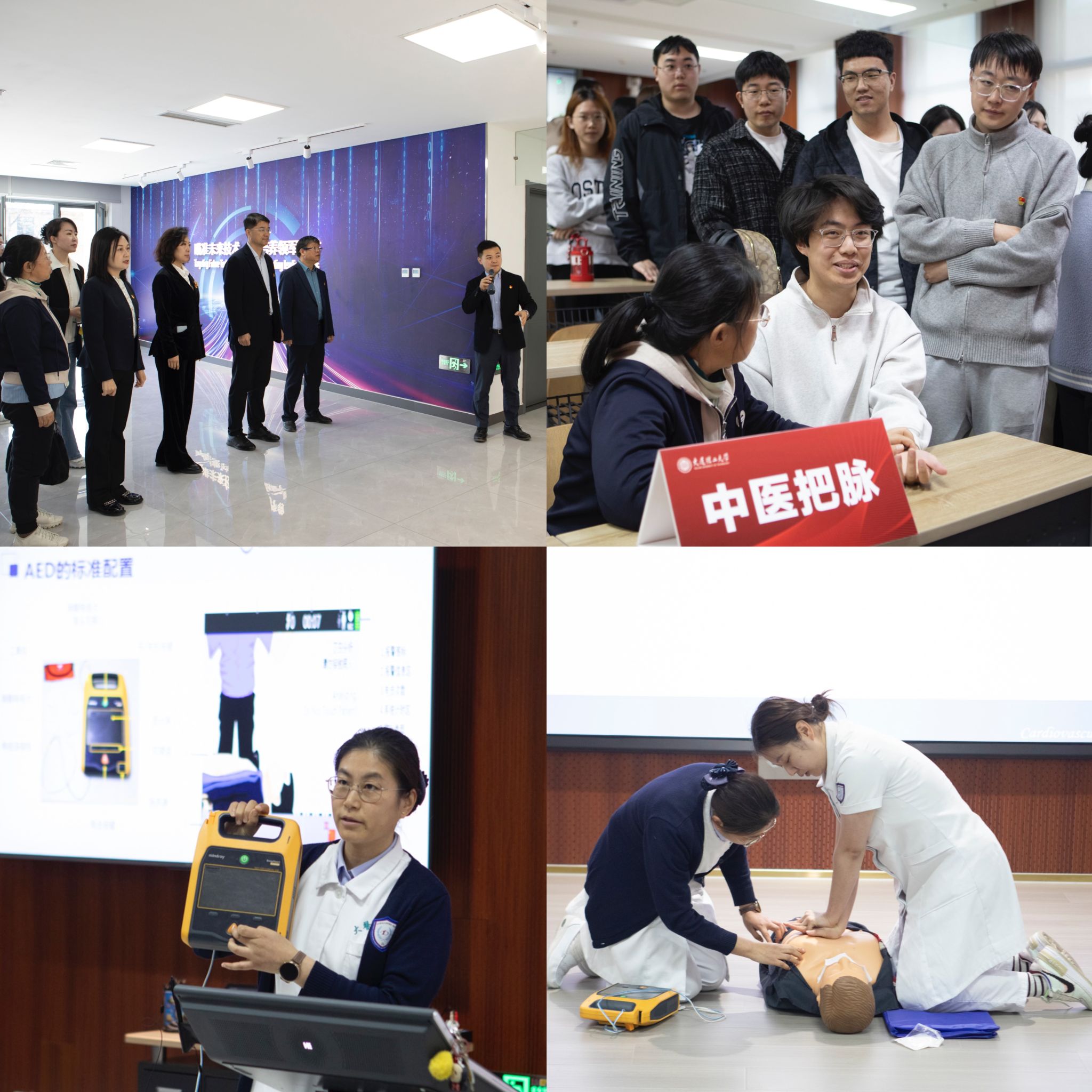 在互动实践环节,全体党员参观了未来技术学院的“人工智能+”交叉学科展示空间,近距离感受到人工智能技术在医疗、教育等领域的巨大潜力。大连医科大学的师生发挥专业优势,开展急救训练教学、中医把脉体验、血糖血压检测等科普活动。
