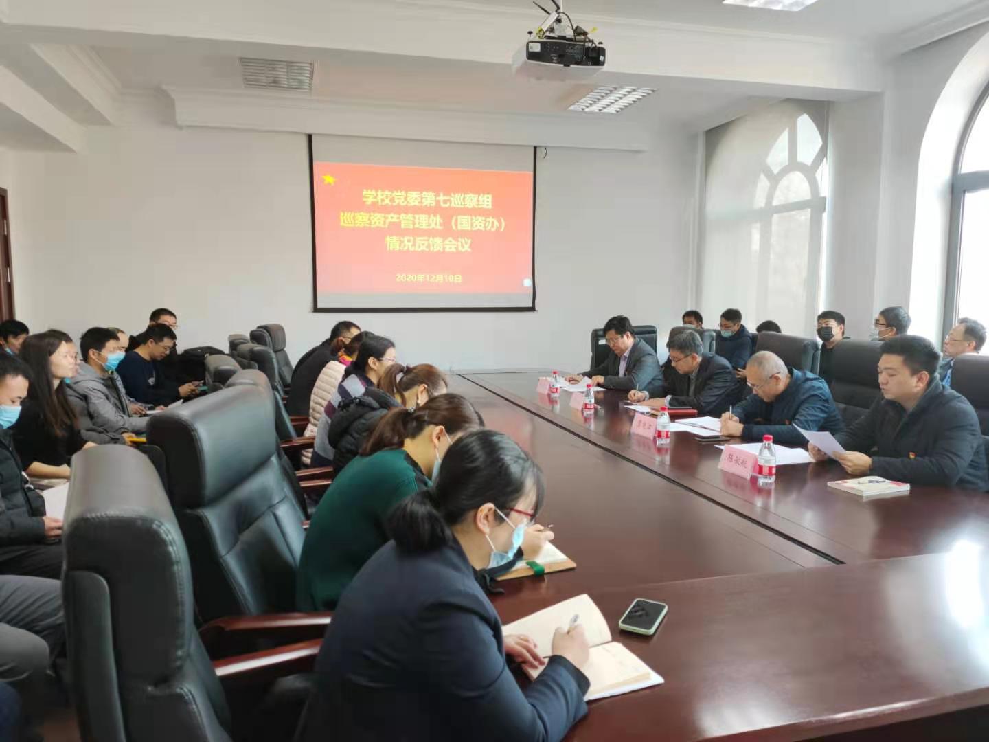 12月10日,根据学校党委巡察工作统一部署,学校党委第七巡察组巡察资产管理处(国资办)情况反馈会议召开。会上,党委常委、副校长姚山代表学校党委对做好巡察整改工作提出要求,党委第七巡察组组长张建生代表党委巡察组向资产管理处(国资办)反馈了巡察情况,资产管理处(国资办)处长贾晓津对做好巡察整改工作进行表态发言。会议由资产管理处(国资办)党支部书记陈敏航主持。
