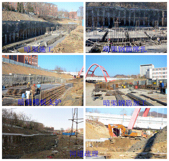 近日辽东地区大幅度降温,冬日寒风凛冽,与此截然不同的是施工现场热火朝天的施工气氛,施工工人在工地上紧张有序的进行工作,以保证工程的顺利开展。现正在进行的主要施工内容有暗渠施工和河道疏理。凌水河暗渠施工主要起到“上层景观,下层排洪”的双层河设计,在满足景观需求的同时,也达到凌水河作为大连市防洪暗渠的需求。施工进度如下: