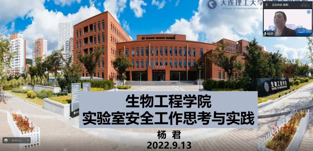 生物工程学院党委书记杨君从识责任、识风险、明路径、明措施四个方面介绍了生物工程学院实验室安全管理工作的做法和经验。
