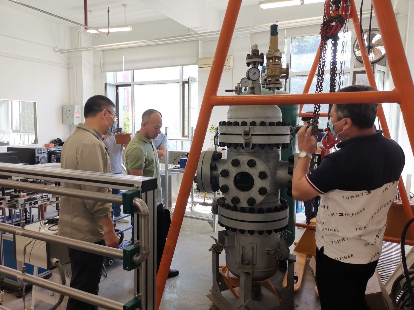 根据学校特种设备安全大检查活动计划安排,9月24日,实验室与设备管理处邀请大连市高新园区市场监督管理局质量监督管理科科长李云飞对我校特种设备使用管理情况进行检查并做现场指导,副处长闫肃及安全科人员全程陪同检查。