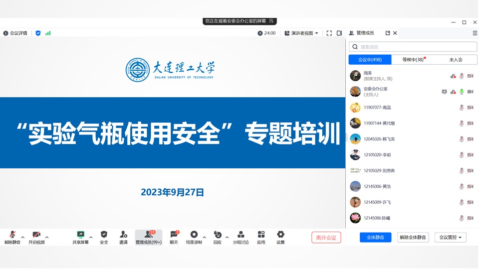 为提高我校实验气体及钢瓶使用安全管理能力,9月27日下午,资产与实验室管理处组织开展“实验气瓶使用安全”专题培训,学校各二级单位安全主管、用气师生、实验室安全检查组成员及气体供应商线上线下1000余人参加培训。