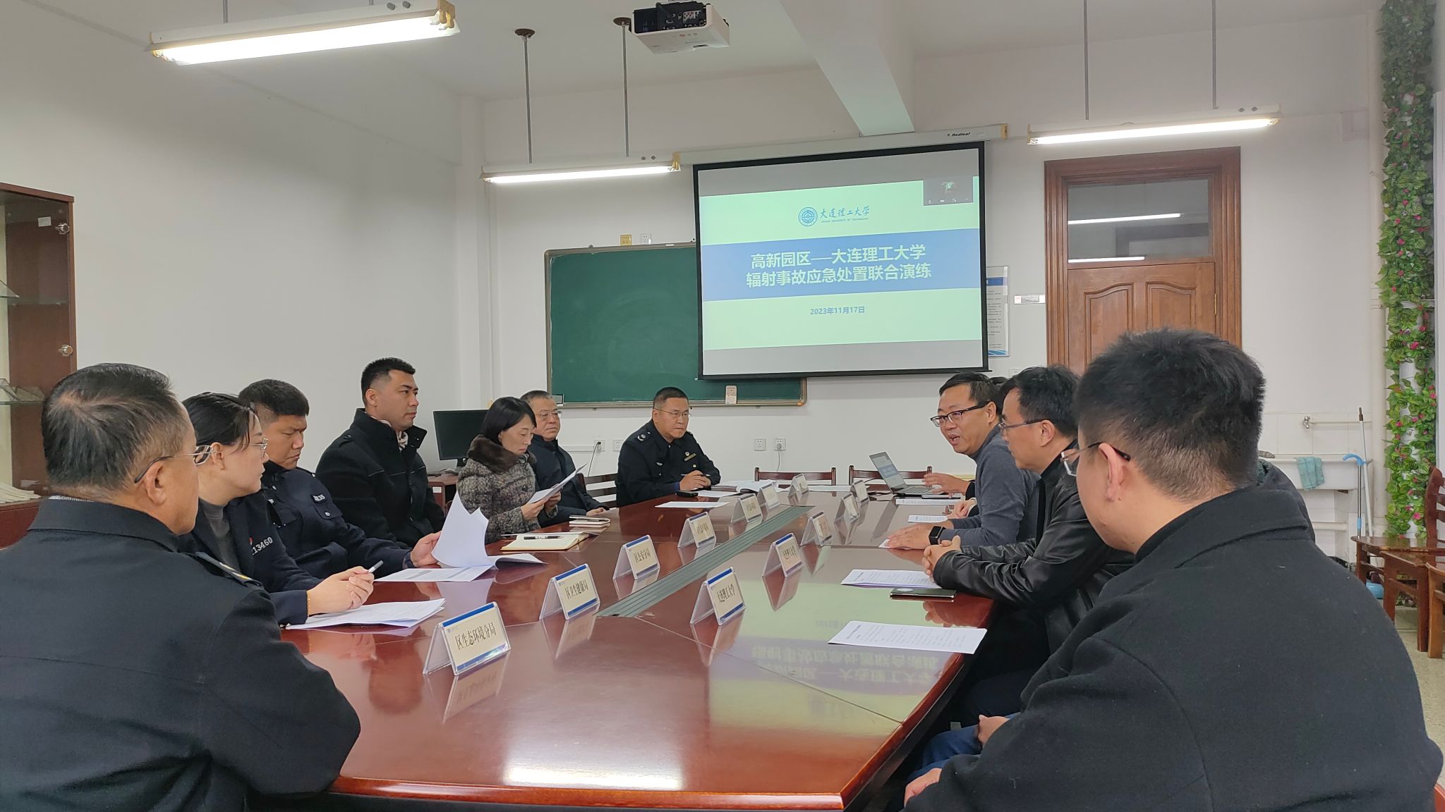 11月17日下午,学校安全管理委员会办公室与高新园区生态环境分局、公安分局、卫生健康局开展辐射安全事故应急处置联合演练。高新园区和我校应急处置相关部门有关人员、学校放射源管理单位的安全主管、实验室负责人、放射源管理责任人参加演练,大连市生态环境局相关领导现场进行指导。