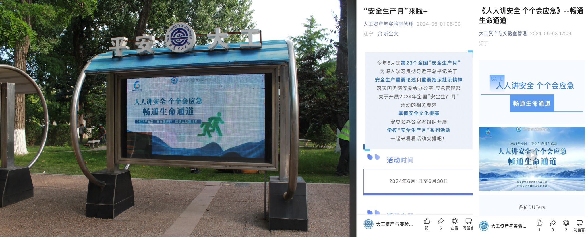 安委会办公室发挥统筹协调作用,制定活动方案,统一制作网宣大图、发布活动安排,协同各分委员会利用学校官方主页、微信公众号、电子显示屏、宣传栏等多种载体和方式开展宣传教育。