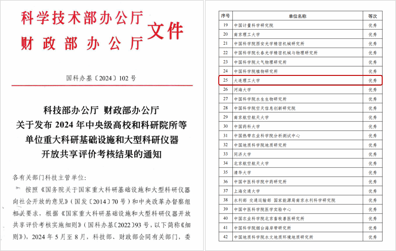 近日,科技部办公厅、财政部办公厅联合发布了《关于发布2024年中央级高校和科研院所等单位重大科研基础设施和大型科研仪器开放共享评价考核结果的通知》(国科办基[2024]102号),我校在此次评价考核中获评优秀(总排名第25名,较去年提升46个名次;在985高校中排名第4)。