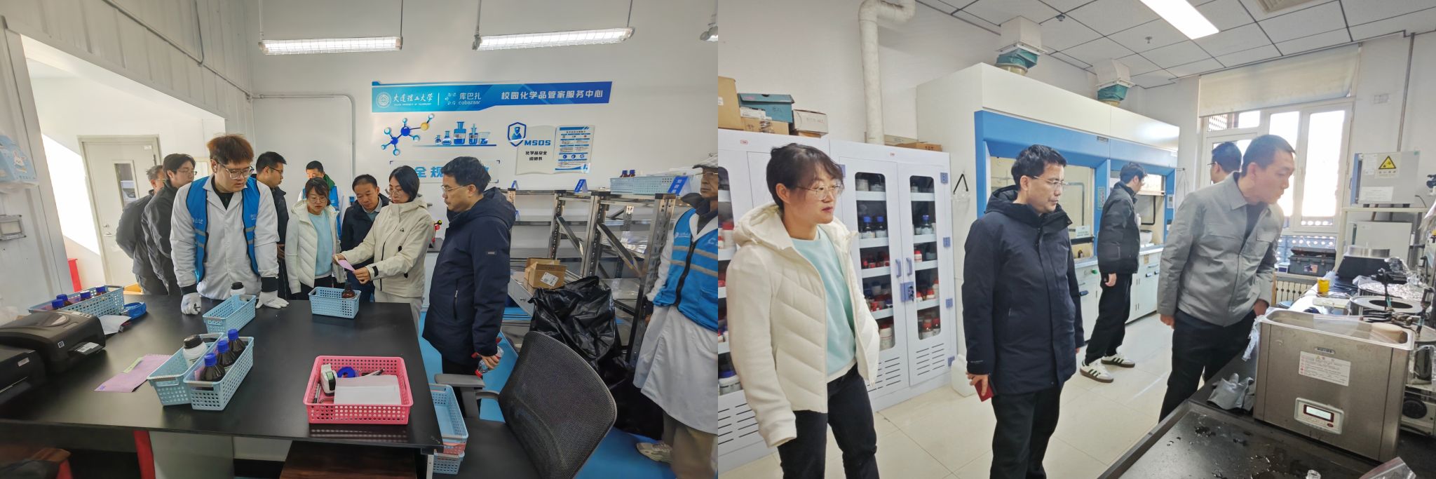 座谈会后,陈炳周副处长一行实地参观了学校化学品管家服务中心及化工学院实验室,具体了解化学品“一瓶一码”管理、实验室日常运行管理、安全保障及信息化应用等情况。