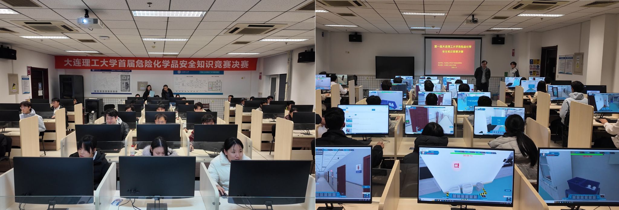 决赛采用虚拟仿真机考形式,聚焦危化品储存、取用、应急处置核心技能,全面考察选手规范操作与应急处置能力。比赛中,各队伍沉着应考,展现出扎实的专业功底。